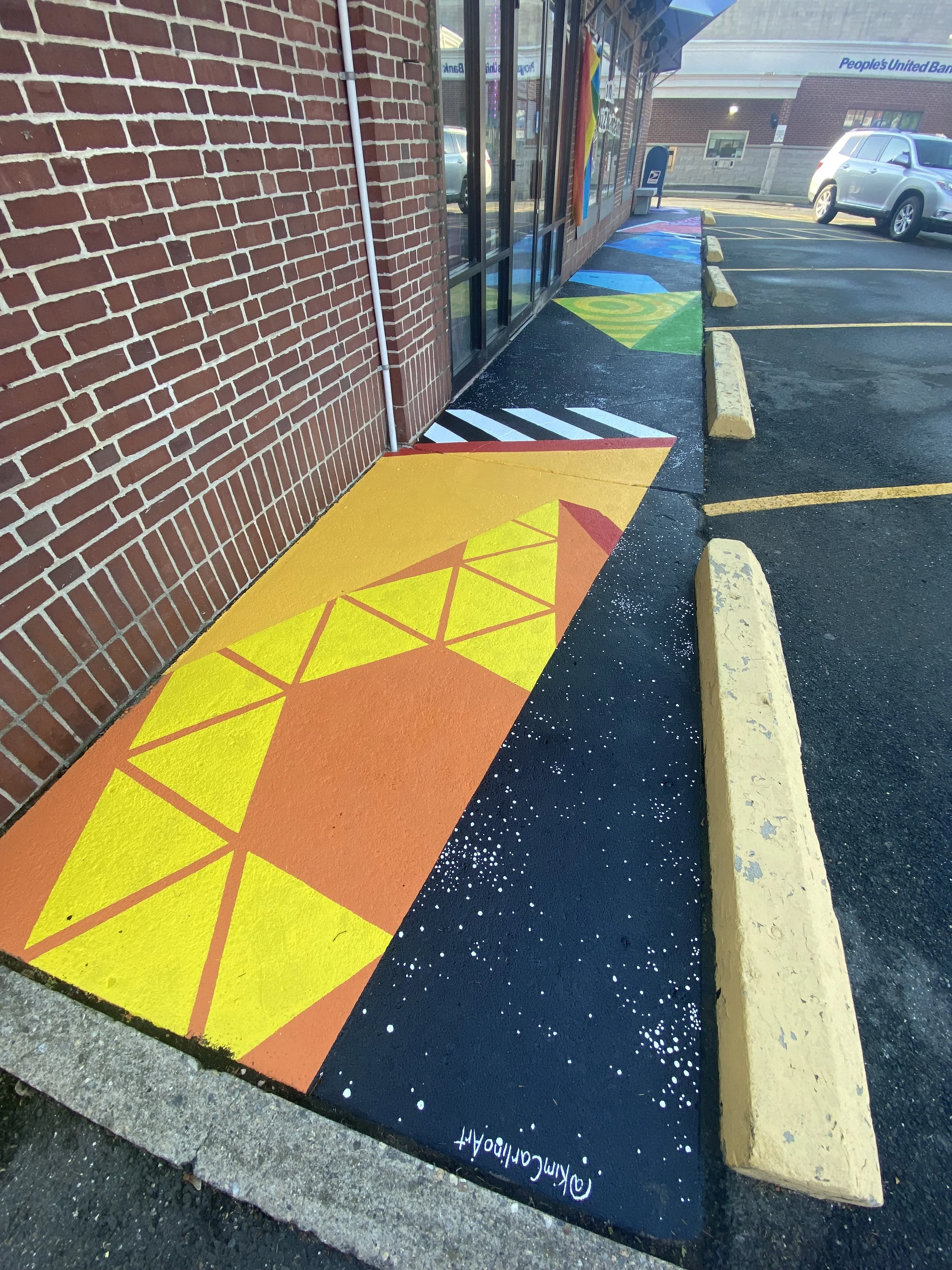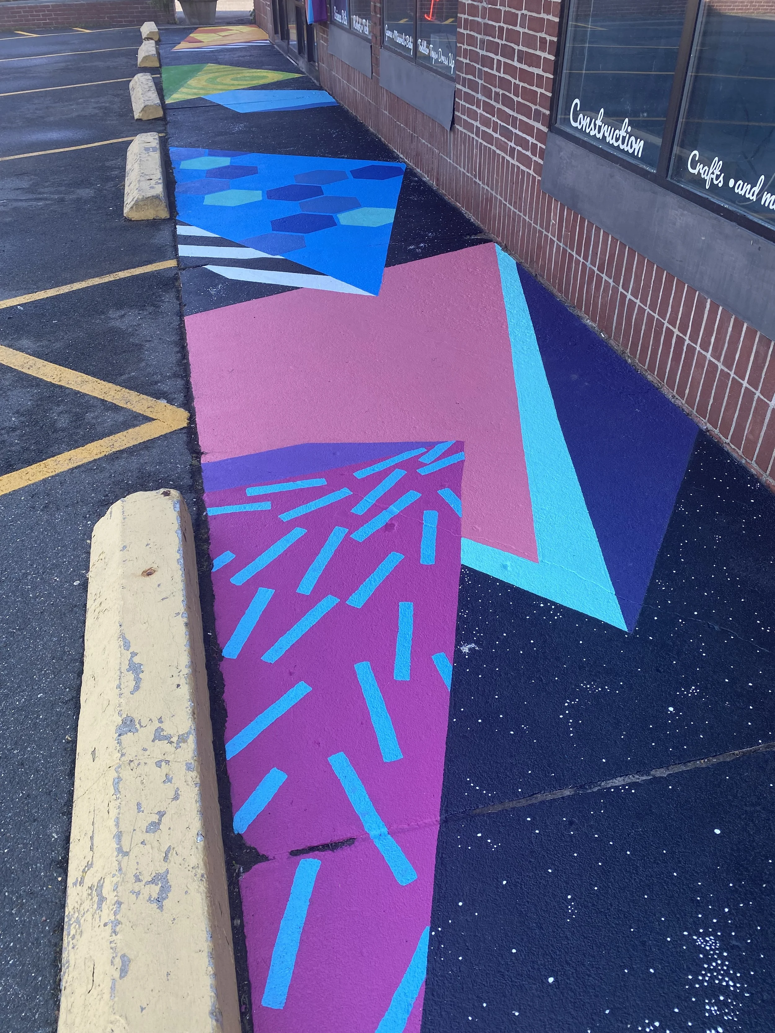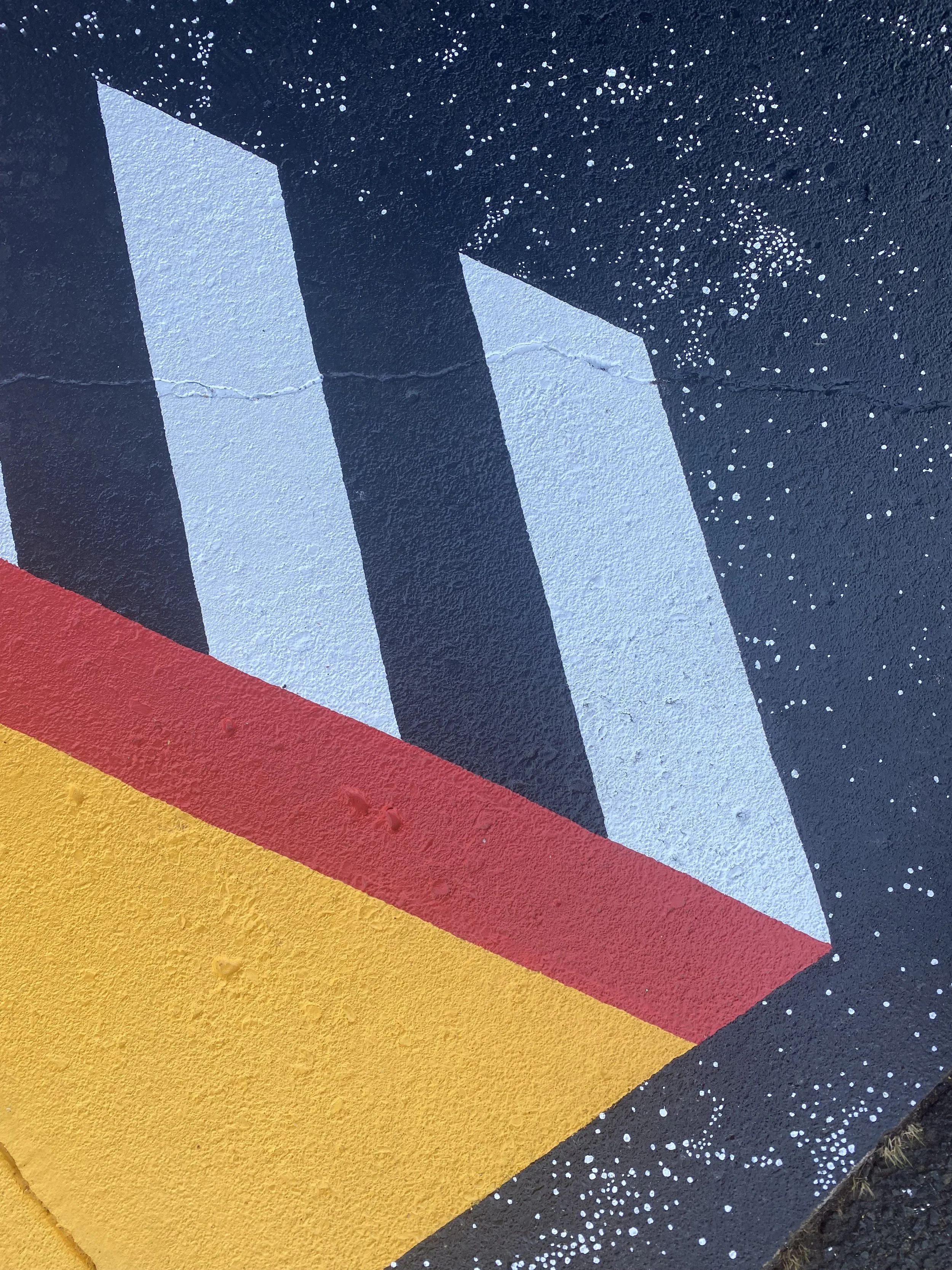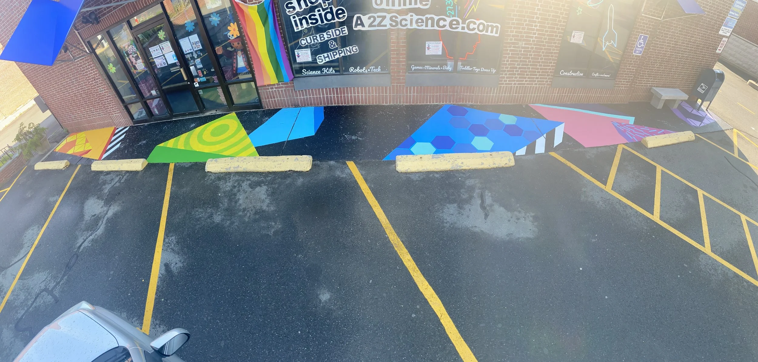 Galactic Space Play. Exterior Acrylic Latex. 40’ x 6’. Northampton, MA. Commissioned by A2Z Science & Learning Center.