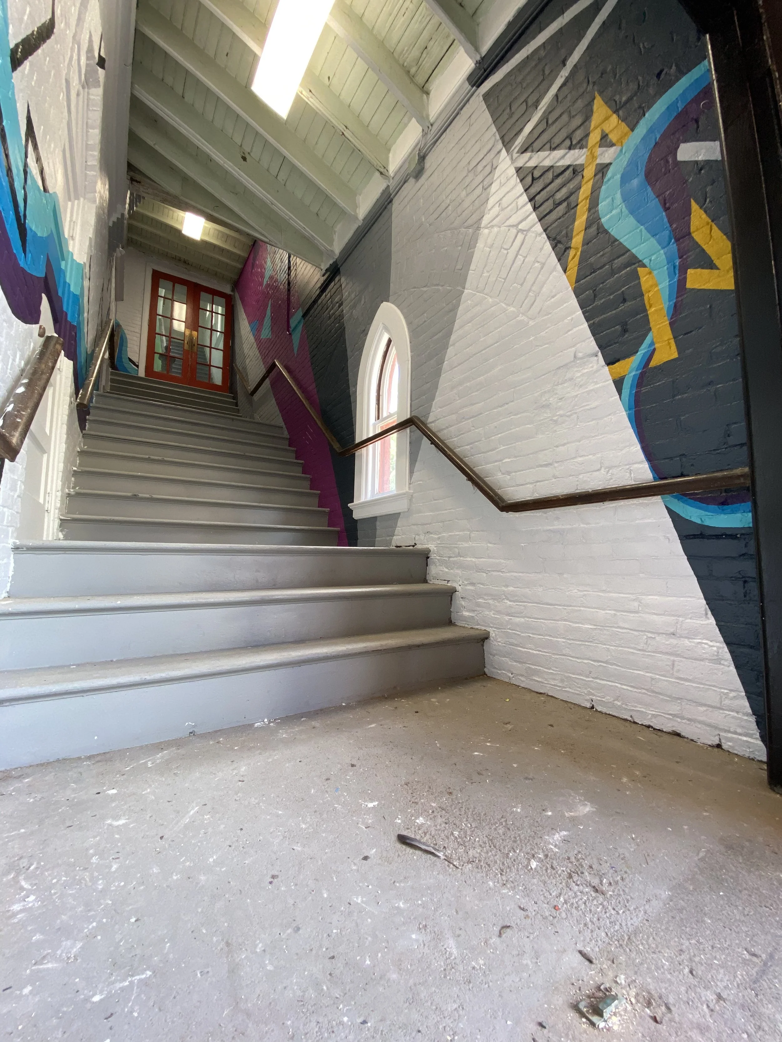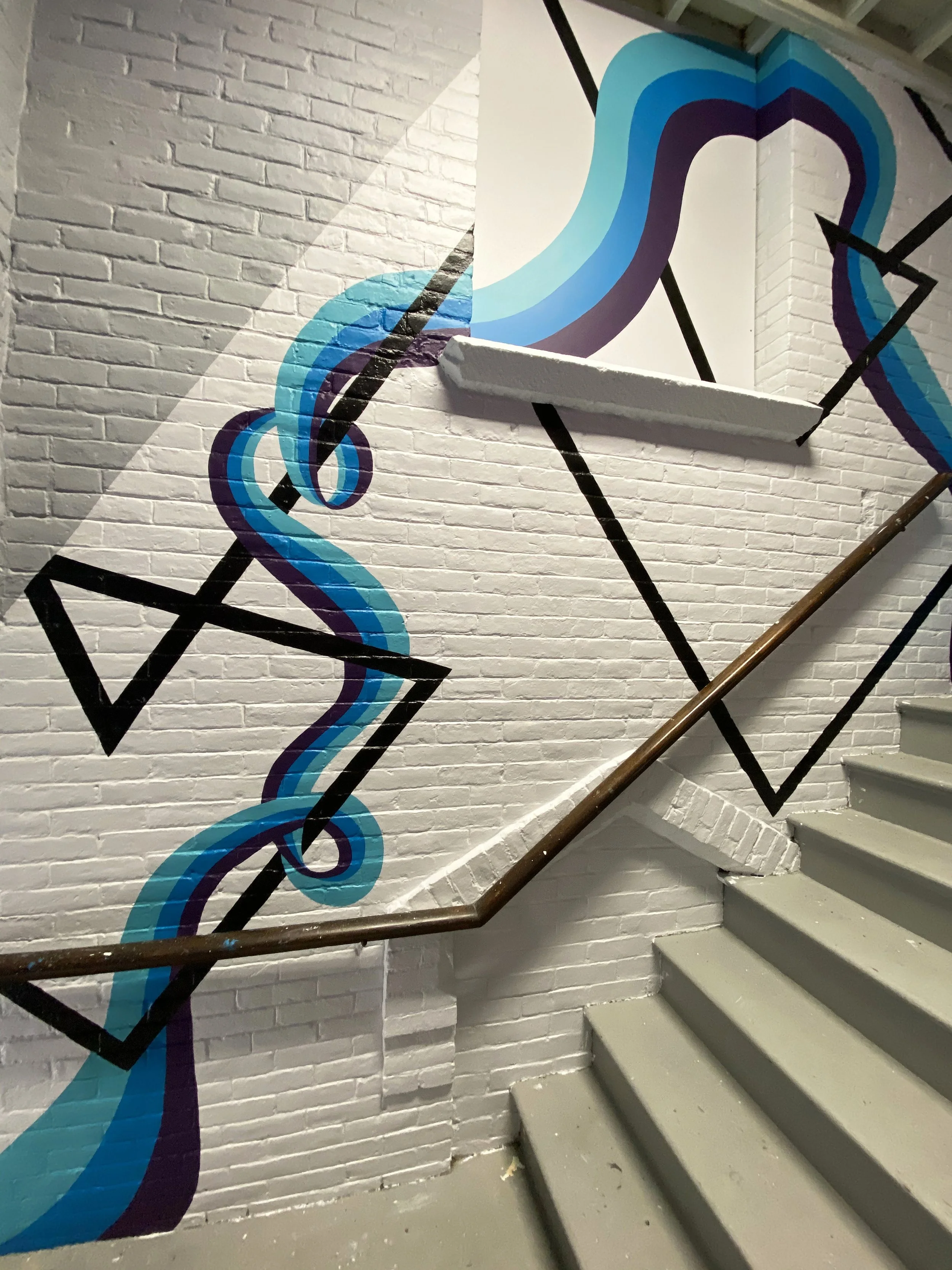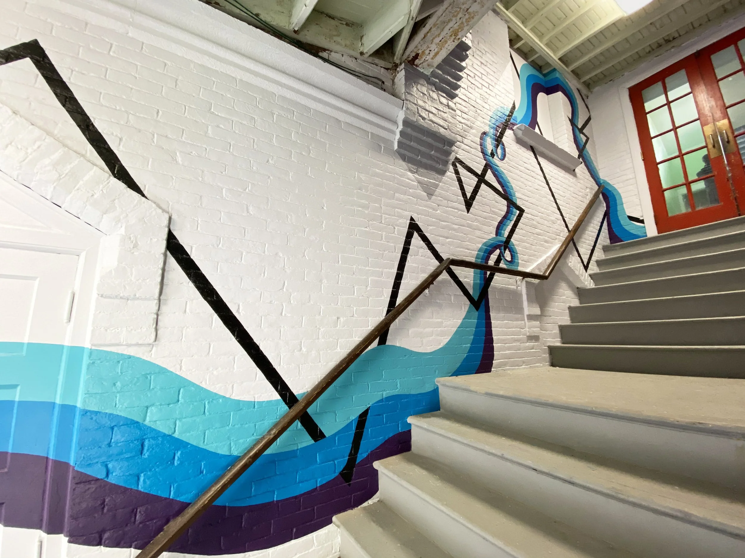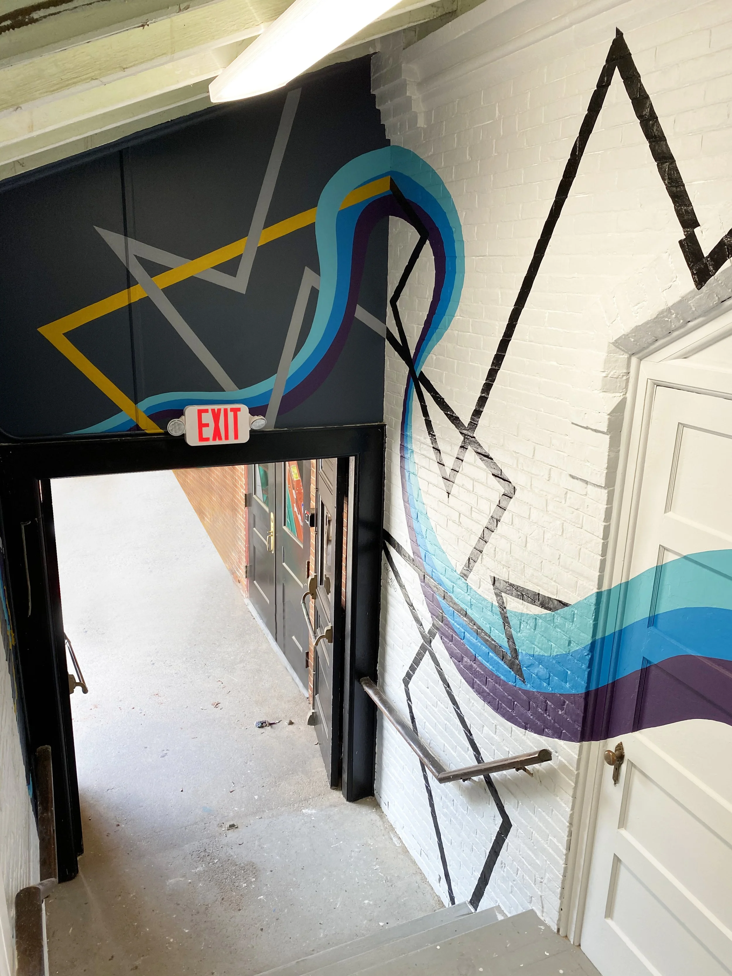 River Hymn for Transformation. Exterior Acrylic Latex. 60’ x 20’. Brattleboro, VT. Commissioned by Epsilon Spires.